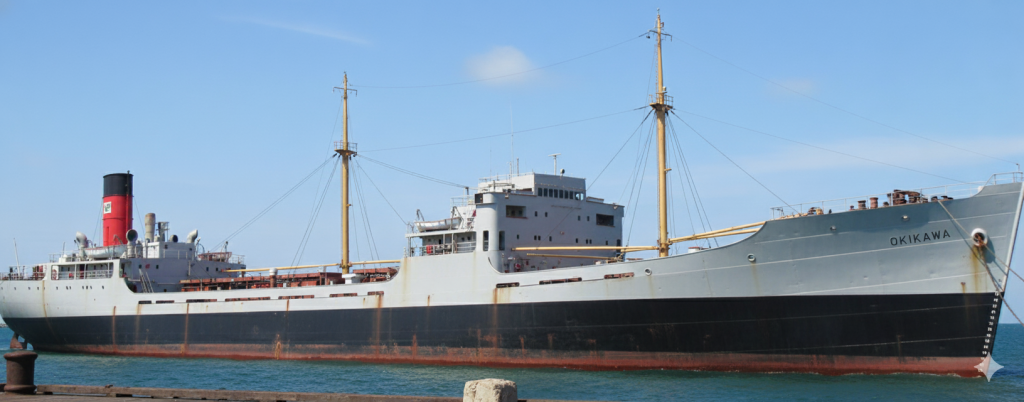 Originally a civilian tanker built 1943 in Japan (Kobe), later used by the Japanese Imperial Navy. Sunk on September 24, 1944, during a U.S. air raid on Coron Bay. For years the wreck was confused with the Taiei Maru, but later research confirmed it is the Okikawa Maru.