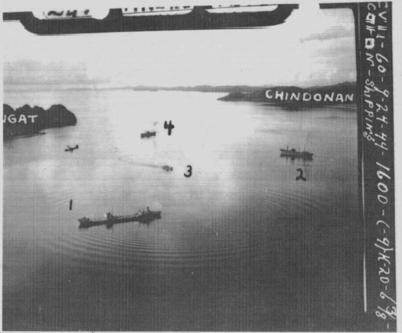 The aerial image taken by the enemy shows the Okikawa (#1) shortly during the attack.