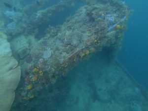 Suitable for beginner and advanced divers – the upper deck starts around 10 m deep. The bottom is about 27m deep. Penetration dives possible into the engine room, cargo holds, and propeller shaft areas. Covered in soft and hard corals, home to lionfish, groupers, snappers, and batfish. Moderate currents can occur, bringing nutrient-rich water and more marine life.