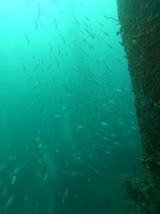 The site hosts a vibrant marine ecosystem, home to batfish, groupers, fusiliers, golden rabbitfish, pairs of white-cheek monocle bream, and damselfish. Scorpionfish can also be spotted camouflaged among the wreck’s structures.