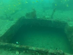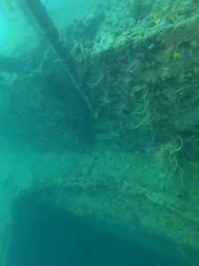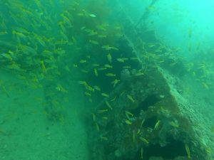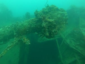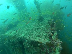 Also known as the Tangat Wreck, the Olympia Maru lies south of Busunga Island and west of Tangat Island. The ship rests of about 32 meters. Over the years, it has been misidentified under several names. Today, it is confirmed that the correct name of this wreck is Olympia Maru. The ship burned before it sank. That’s why the upper deck is badly deformed and the masts are no longer straight.