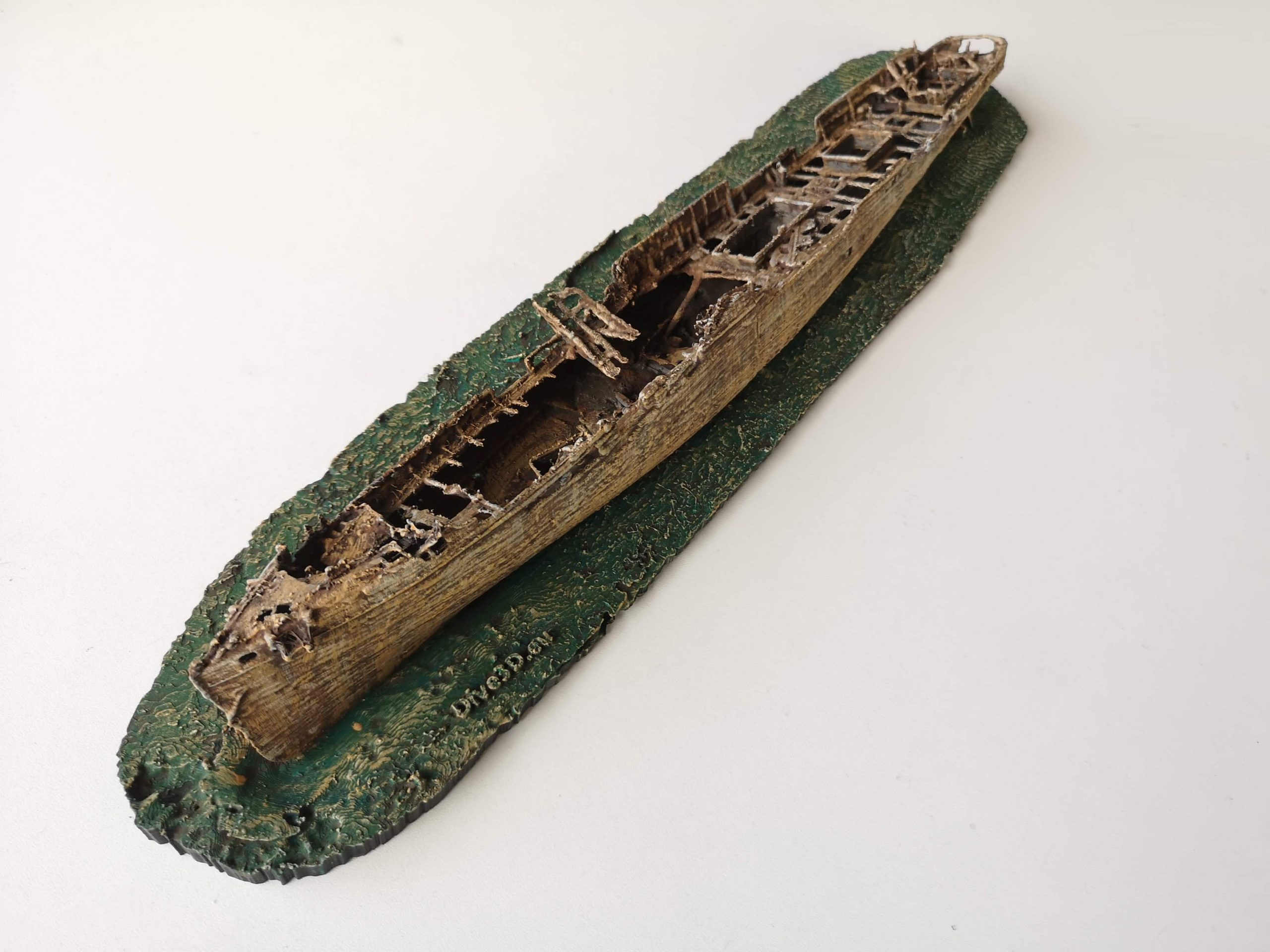 Wreck in 12m water in Plytra Bay, Laconian Bay, Peloponnese (Greece). Built in 1888 in Trieste, Austria-Hungary, as a passenger freighter SANTORIO. Steam engine 2 cylinders. Since 1938 oil engine. Sunk during WW2 on April 26th, 1941 after attack by German aircraft.